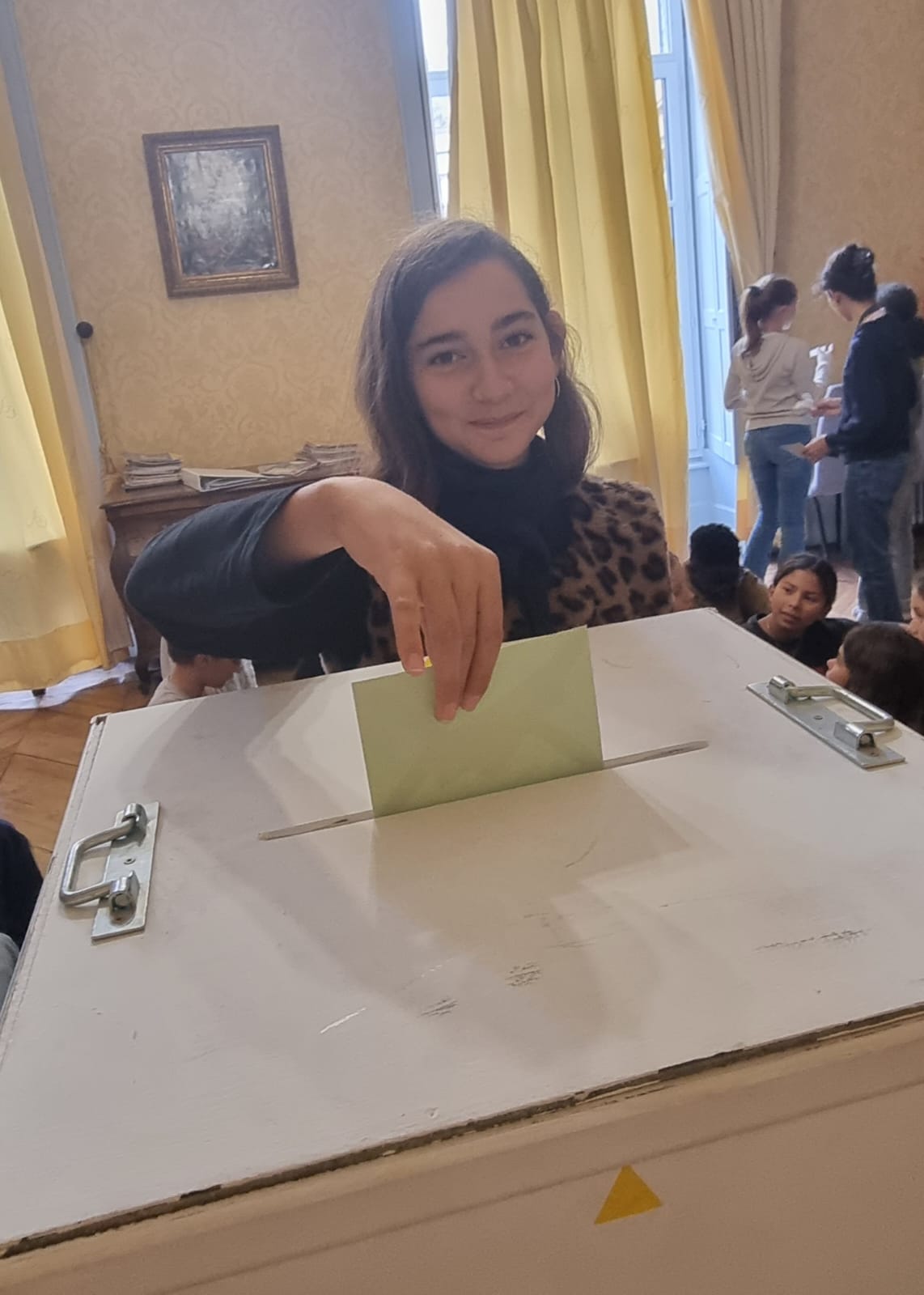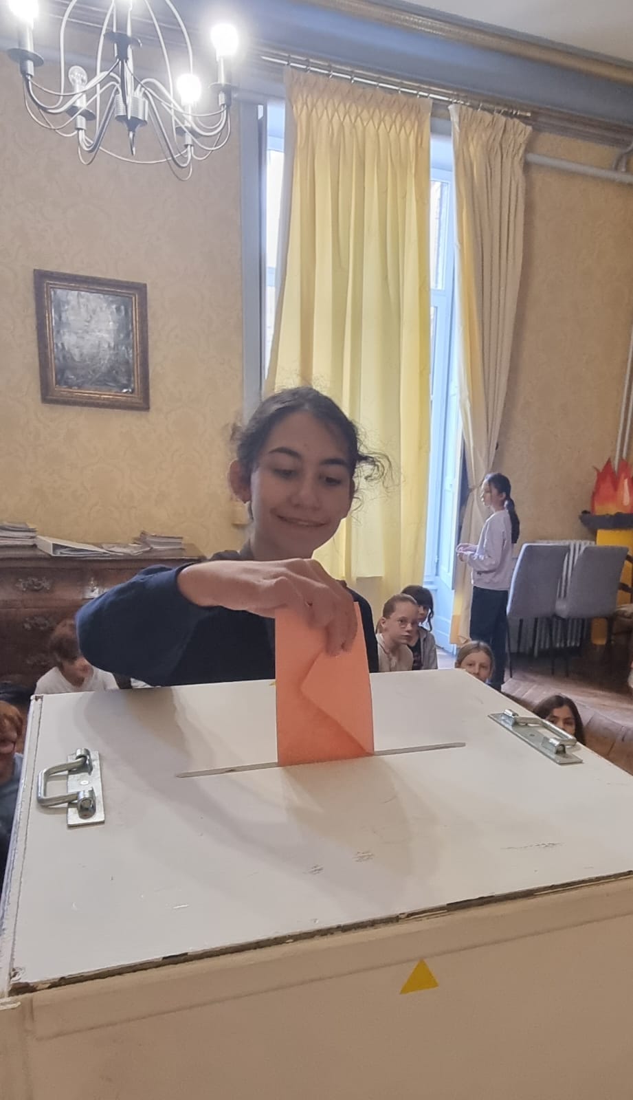 Chaque niveau de classe a été sensibilisé à l’organisation et au déroulement de ce type de scrutin : les 6ièmes en y participant physiquement dans le Grand Salon et les 5ième, 4ième et 3ième en le vivant par le numérique, via un bureau de vote virtuel. Une expérience ludique et riche d’enseignement.
