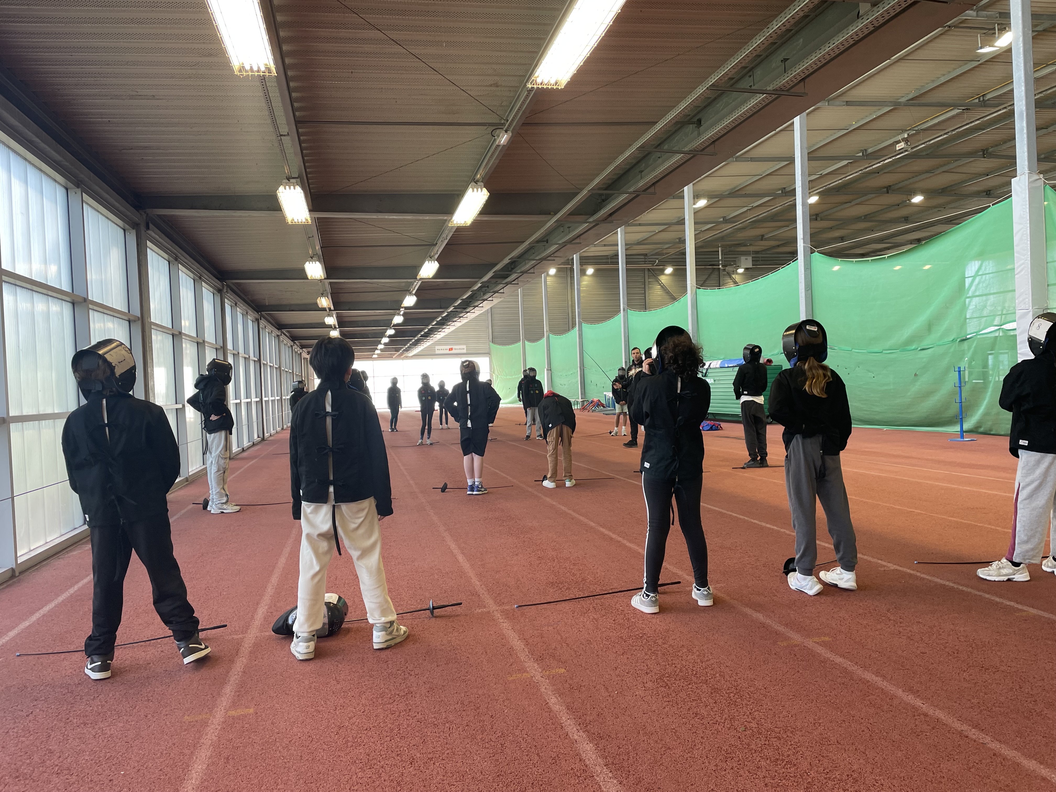 Nous avons entamé le cycle des sports de combat avec une initiation à l’escrime, une activité qui a constitué une belle découverte pour la majorité des élèves de 6e.