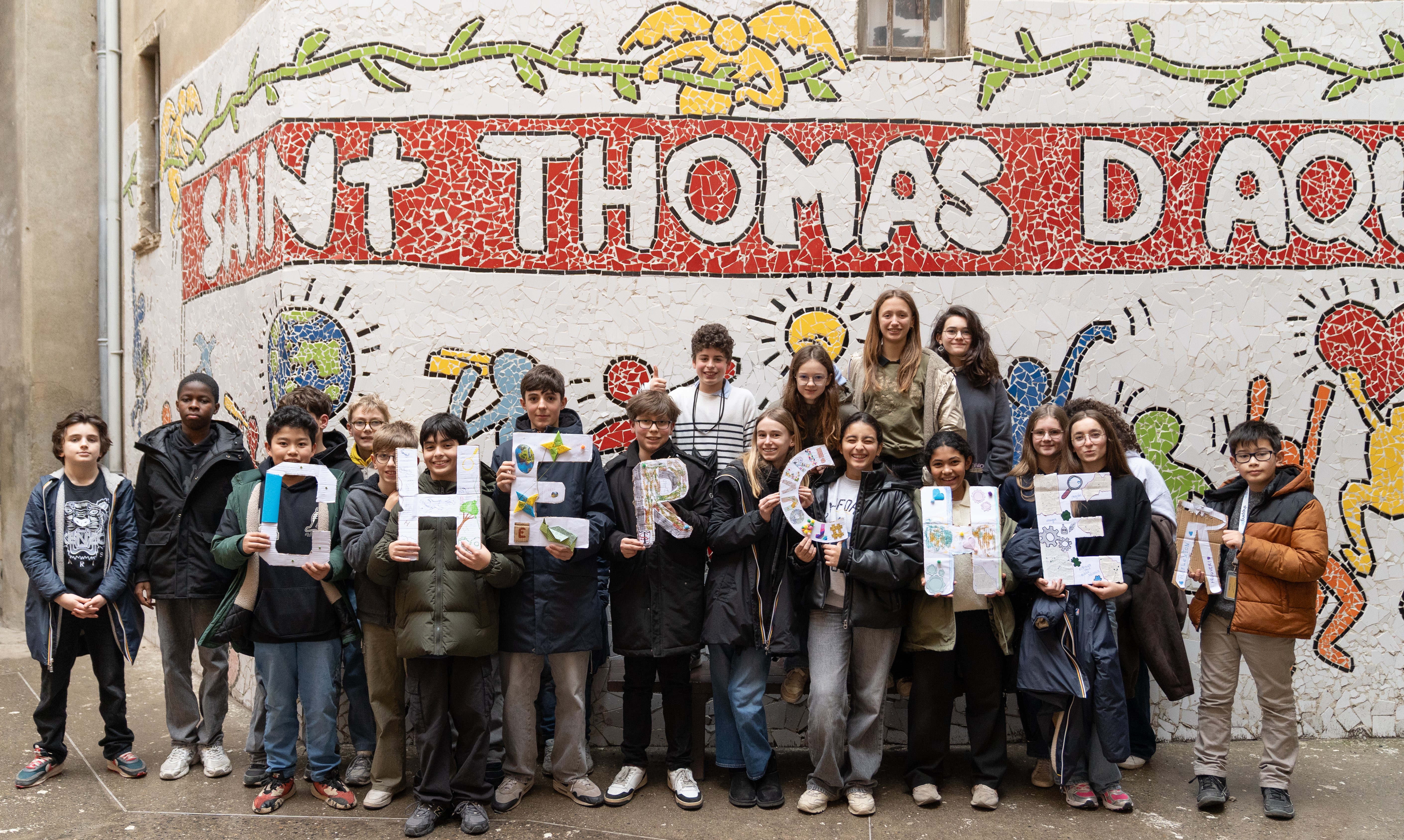 Mardi 27 janvier, élèves et équipes de l’établissement ont, avec un jour d’avance sur le calendrier, célébré comme chaque année leur saint patron, Saint Thomas d’Aquin. Sous un temps pluvieux, qui n’a en rien entamé le bon esprit et la joie de tous, élèves, enseignants et personnels ont confectionné et décoré les lettres de mots représentatifs des valeurs et ambitions de notre projet d’établissement. Une manière concrète et joyeuse de vivre et partager l’esprit et le charisme de Saint-Thomas.